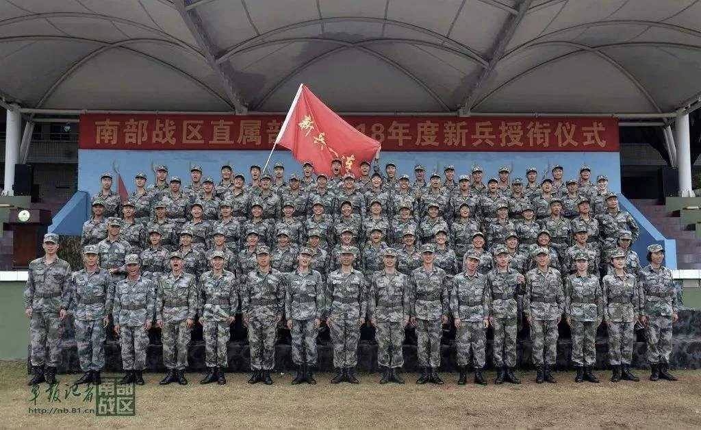 南部战区直属部队2018年度新兵授衔。 圖片來源:百度