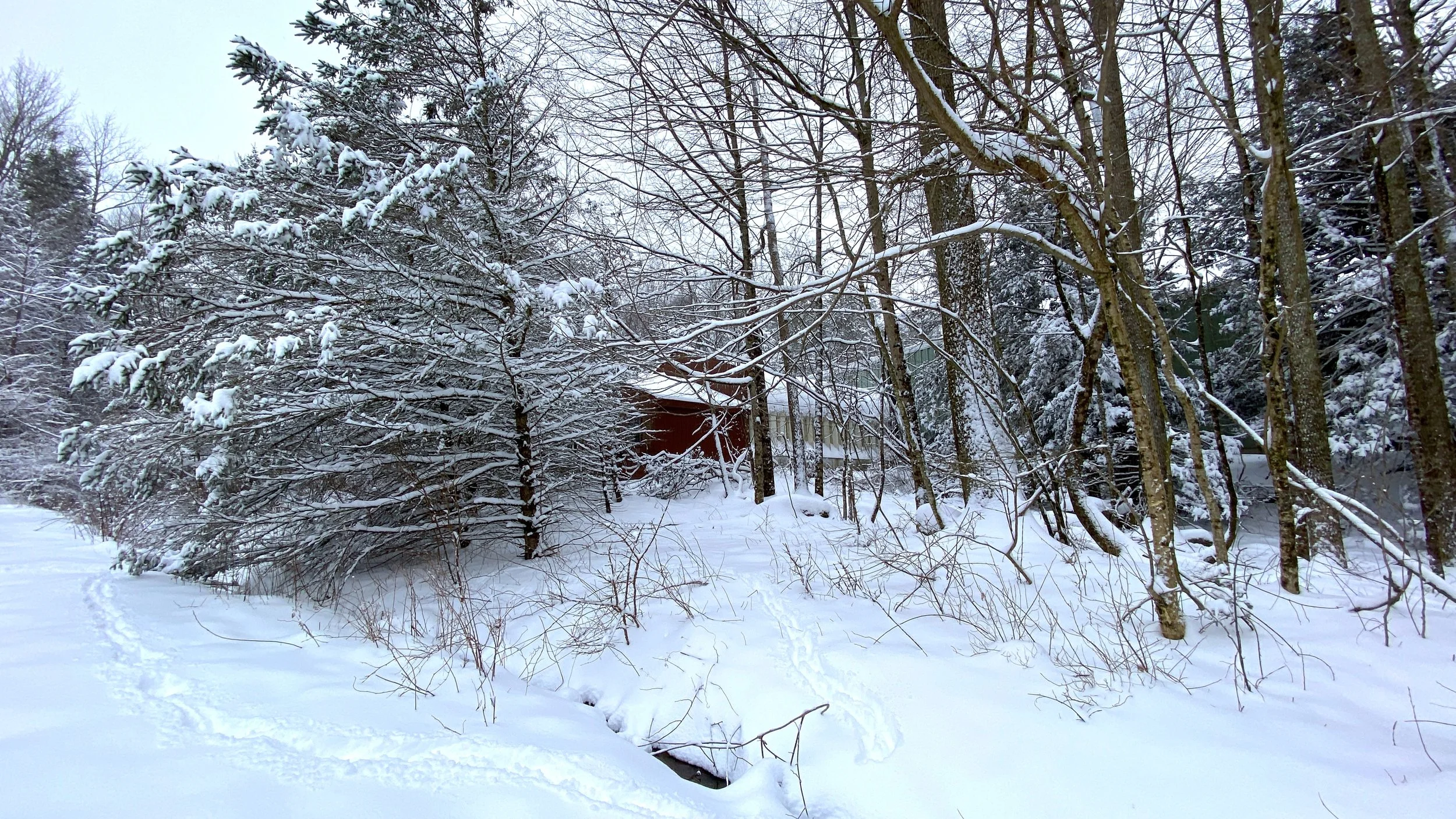 左下角的那個「橢圓包」,是我的汽車車頭……地上的腳印,是貪玩的狗子留下的。狗子也冒著大雪,到林子裏去玩了一圈。