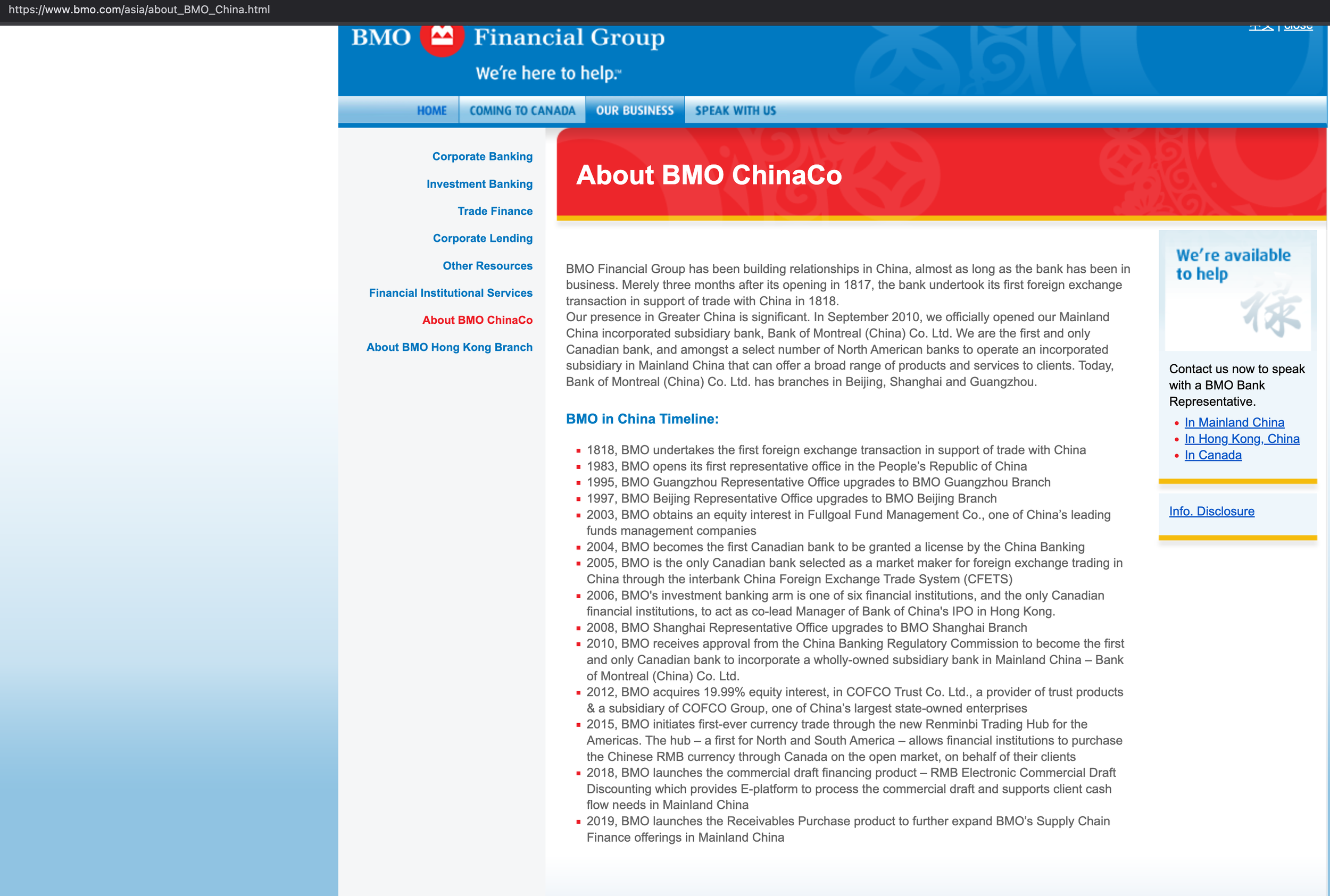 Screenshot from BMO. ChinaCo. Source: https://www.bmo.com/asia/about_BMO_China.html